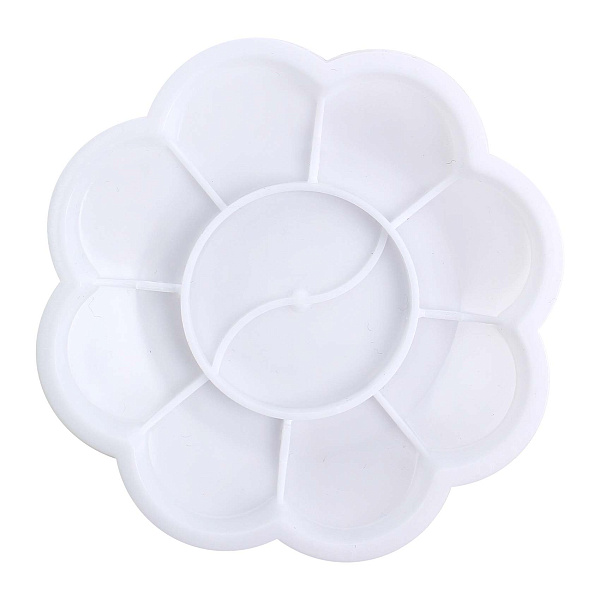 Палитра для красок в форме цветка привлечет внимание маленьких художников своим оригинальным дизайном. Восемь удобных ячеек позволяют смешивать разные цвета, создавая новые оттенки. Прочный пластик делает изделие устойчивым к повреждениям и безопасным для детей. Компактный размер идеально подходит для использования как дома, так и в школе.