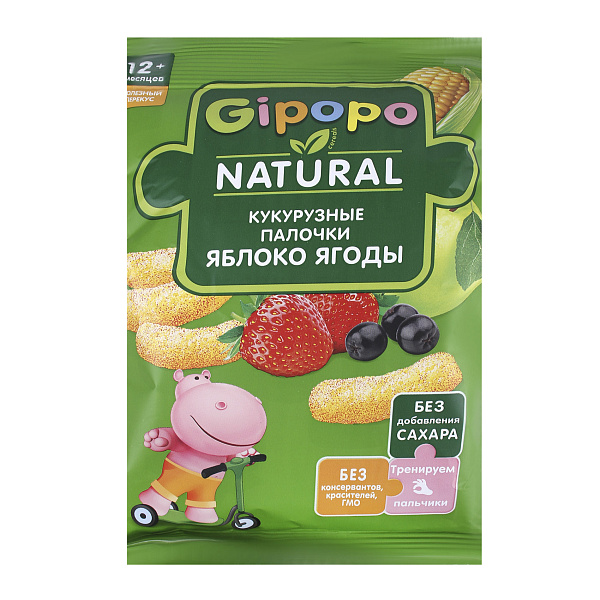 Кукурузные палочки «Гипопо» с яблоком и ягодами предназначены для детей старше 12 месяцев. Легкие и хрустящие, они обладают приятным плодово-ягодным вкусом, который порадует даже самых маленьких гурманов.