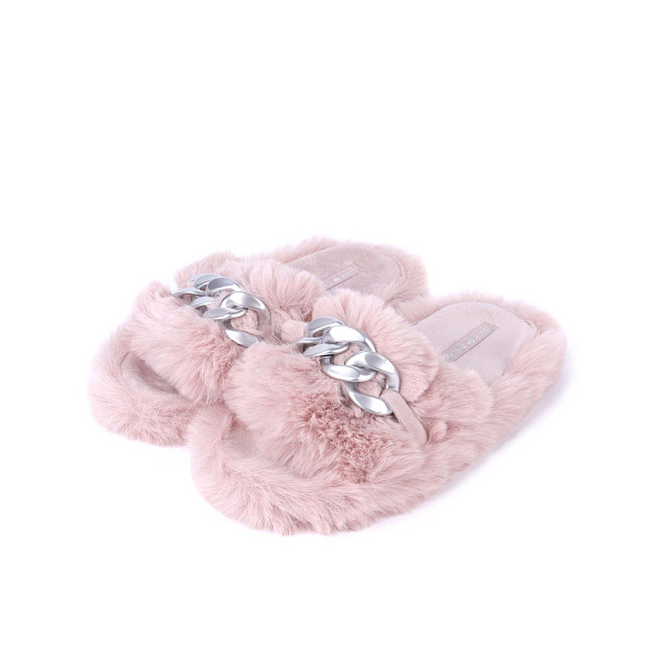 Пантолеты Barbaris меховые с металлической цепочкой серебристого цвета розовые