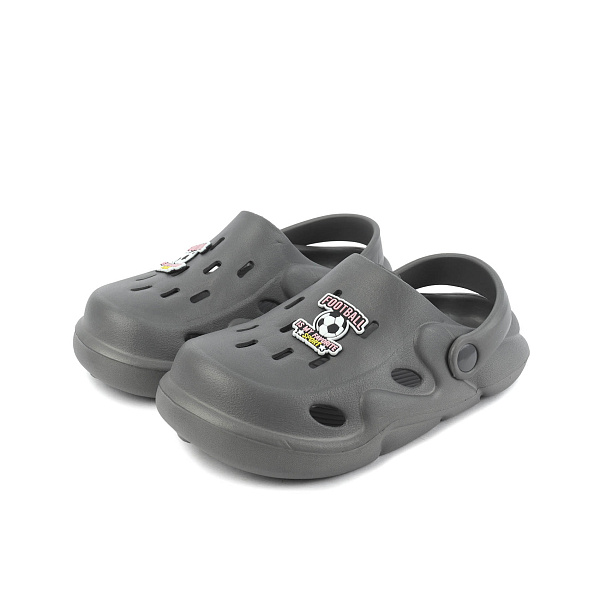 Пляжные пантолеты для мальчика дошкольного возраста будут удачным выбором на летний сезон, а также их можно взять с собой на пляжный курорт. Стильные пантолеты серого цвета украшены яркими декоративными элементами на футбольную тематику, которые понравятся каждому мальчику. Литые тапочки изготовлены из материала ЭВА (этиленвинилацетат), поэтому имеют легкий вес и просты в уходе. Модель с открытой пяткой и дополнительными отверстиями разного размера обеспечивает естественную вентиляцию ступней. Задник в виде тонкого ремешка фиксирует обувь на ногах. Ровная упругая подошва с протектором имеет надежную устойчивость.