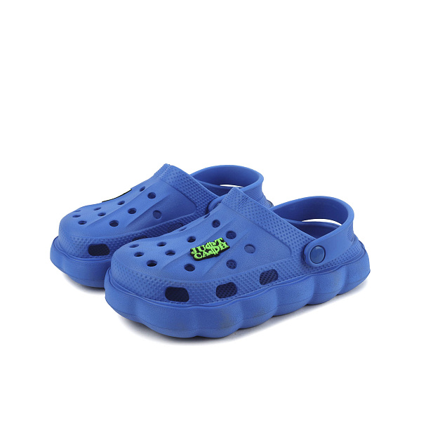 Пляжные пантолеты для мальчика дошкольного возраста станут универсальной летней обувью, а также пригодятся для поездок на отдых. В таких тапочках мальчику будет удобно ходить и бегать, а ноги не будут потеть даже на солнце в жаркий день благодаря особенностям конструкции. Стильные пантолеты яркого синего цвета украшены декоративными элементами контрастного оттенка. Пантолеты изготовлены из материала ЭВА (этиленвинилацетат) по современным технологиям. Литая конструкция имеет легкий вес и нетребовательна в уходе. Модель с открытой пяткой и дополнительными отверстиями разного размера для обеспечения естественной вентиляции сохраняет правильную температуру ног и предотвращает потливость. Тонкий ремешок сзади фиксирует обувь на ногах, а ровная подошва обеспечивает надежную устойчивость.