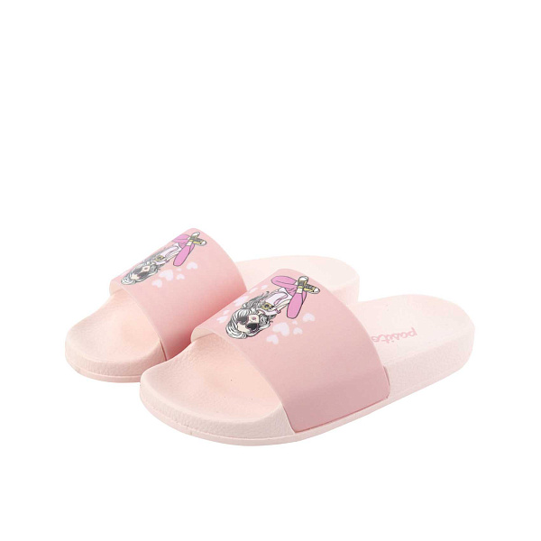 Пляжные пантолеты для девочки дошкольного возраста пригодятся юной моднице не только на пляже, но и для прогулок во дворе или отдыха на даче. Летняя обувь нежно-розового цвета с изображением девушки в окружении сердечек покорит сердце малышки. Изготовленные из материала ПВХ пантолеты очень легкие по весу и долговечные, поэтому они могут прослужить не один сезон. Такая обувь легко очищается от загрязнений и очень гигиенична. Открытая конструкция без задника помогает обеспечивать естественную вентиляцию ног. Пантолеты комфортно сидят на ногах и обладают хорошей устойчивостью благодаря ровной плоской подошве.