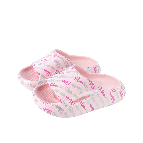 Шлепанцы Pasito пляжные с розово-серебряными надписями нежно-розовые