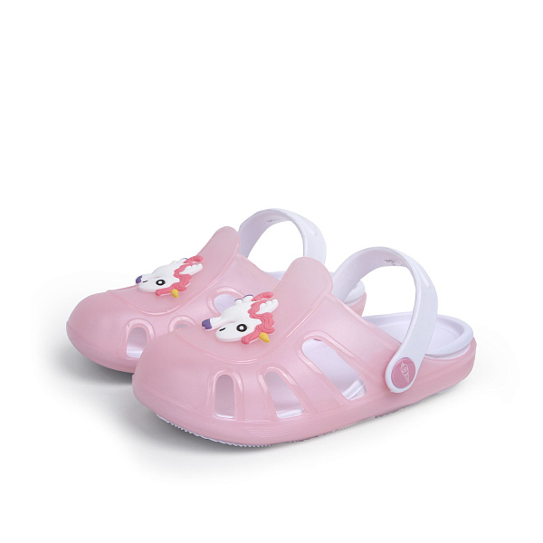 Универсальная практичная обувь на каждый - пляжные пантолеты. Модель разработана для девочки ясельного возраста. Обувь выполнена в нежном розовом дизайне и декорирована 3D-фигуркой единорога. Обувь имеет анатомическую платформу, а также комфортный поворачиваемый эластичный ремешок. Область стельки с рифленой поверхностью нежно массажирует стопу. Основные преимущества пантолет - малый вес, низкая истираемость, вентилируемый носок, гипоаллергенность. Материал изготовления: низ - этиленвинилацетат, верх - поливинилхлорид. Обевь сертифицирована и безопасна для здоровья.