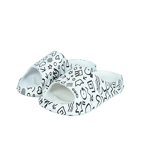Красочные шлепанцы можно взять с собой на пляж, в бассейн, в общественную сауну или баню. Пантолеты изготовлены из упругого ЭВА. Прочный полимерный материал в составе выдерживает температурные перепады, не впитывает влагу, в них не поскользнешься на мокрых поверхностях. Также шлепанцы из ЭВА уберегут ноги от горячего пляжного песка и острой гальки. Дети смогут быстро снять и надеть пантолеты, потому что на них нет застежек. Анатомическая форма подошвы верха позволяет шлепанцам не соскальзывать с ноги. Обувь предназначен для детей школьного возраста.