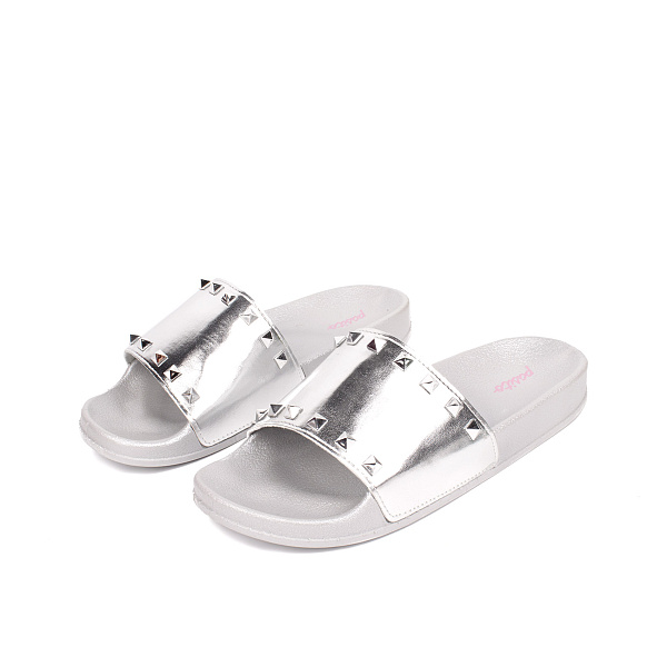 Пляжные шлепанцы можно легко брать с собой на природу или в бассейн. Подошва из прочного ПВХ выдерживает высокие температуры и не впитывает влагу в процессе использования. Мягкий текстиль подкладки приятен на ощупь. Подошва защищает ноги от горячего песка и острых камней. Такие шлепанцы не скользят на траве, на мокром полу в крытых бассейнах и душевых. Пантолеты без застежек комфортно надевать и снимать благодаря отсутствию липучек и шнуровки. Верх выполнен из кожи, а имитация металла с заклепками выглядит оригинально, что понравится подросткам. Рекомендовано для детей школьного возраста.