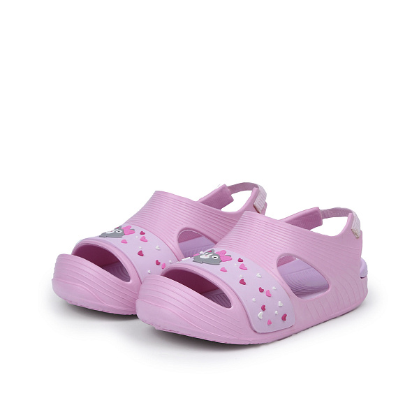 Пляжные розовые пантолеты - универсальная летняя обувь на каждый день для девочки ясельного возраста. Модель декорирована мультяшным героем с милыми сердечками. Имеет эргономичную форму, закругленный носочек, комфортный широкий фиксатор на пятку. Пантолеты чудесно сочетают два ключевых преимущества - небольшой вес и прочность. В такой обуви малышка может комфортно проводить время на летнем отдыхе, гулять во дворе дома или дачи. Основа обуви - этиленвинилацетат. Не впитывает влагу, не имеет сторонних запахов, стойко выдерживает истирающие нагрузки.