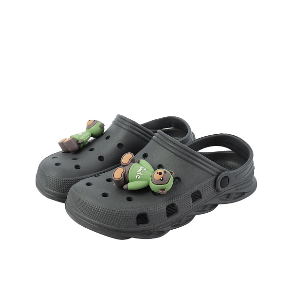 Пляжные пантолеты созданы с учетом основных потребностей маленького мальчика, призваны обеспечить ему все условия для комфортного отдыха. Для оформления использована практичная цветовая гамма. Украшением служит объемная фигурка смешного медвежонка в капюшоне. Подвижный ремешок поможет закрепить обувь на ноге, не окажет внешнего давления на пятку. Многочисленные отверстия разной формы призваны улучшить естественное проветривание.