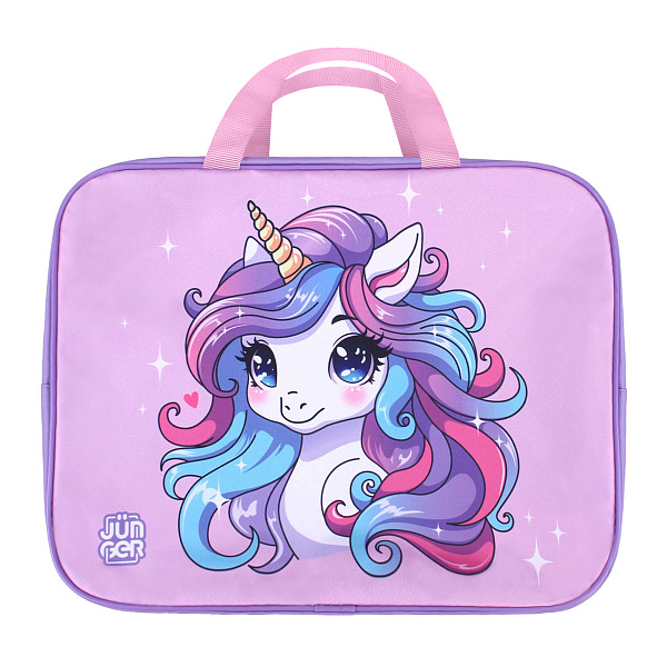 Папка А4 Единорог для уроков труда и ИЗО на молнии с ручками нежно-фиолетовая