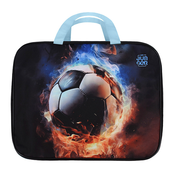 Папка А4 «Мяч» станет отличным решением для хранения школьных и творческих материалов. Изготовлен из прочных материалов: полиэстера и ПВХ. Папка надежно защищает содержимое от влаги и повреждений. Дизайн в черно-голубых тонах с изображением яркого огненного мяча привлечет внимание юных любителей футбола.