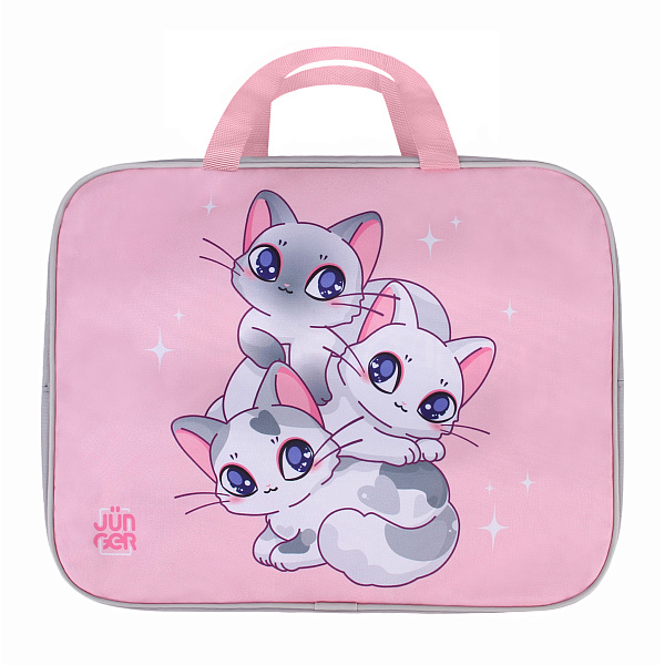 Папка JUNGER А4 Веселые котята для труда и ИЗО с ручками серо-розовая
