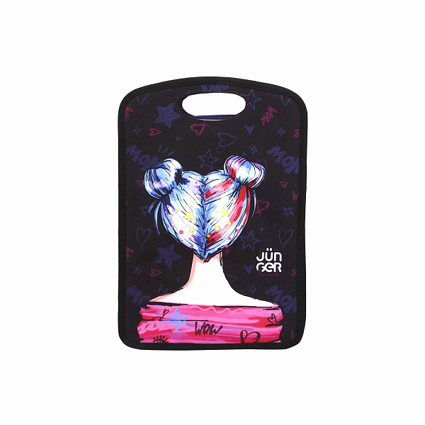 Полезным аксессуаром для ребенка школьного возраста послужит папка. Она имеет два отделения с застежками в виде молнии. Боковые детали снабжены прорезными ручками, что существенно упрощает использование изделия.
