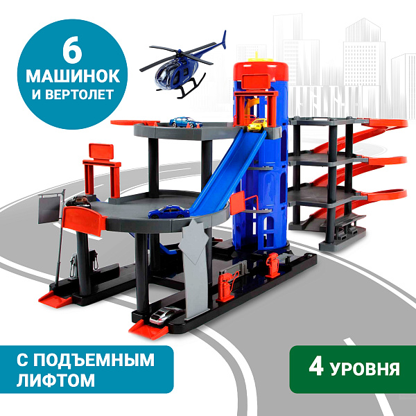 Четырехэтажная парковка с лифтом – отличное место, чтобы оставить на ночь свой автомобиль. Парковка оснащена заправочными станциями, лавочками для отдыха и даже вертолетной площадкой! А если малышу захочется припарковать свою машину на 4-м этаже – он может воспользоваться лифтом и поднять автомобиль, прокручивая рукоятку на верхнем уровне.