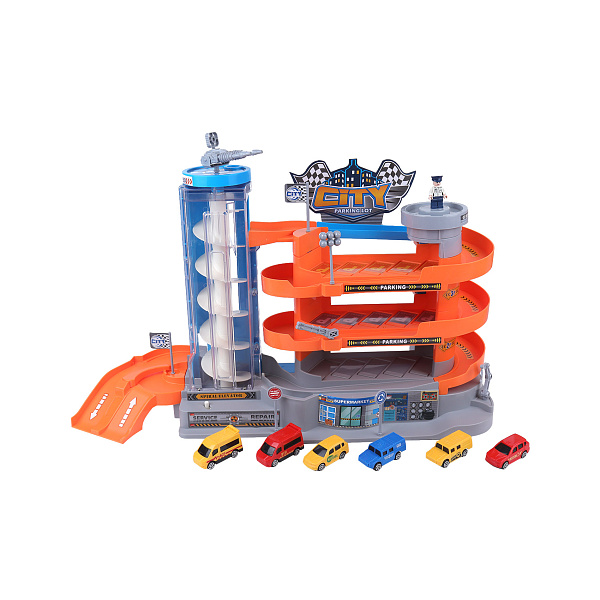 Игровая конструкция предназначена для детей дошкольного возраста. Она изготовлена из прочной и безопасной АБЧ пластмассы, устойчивой к внешнему воздействию. В комплектацию входит парковка с лифтом, 6 машинок, вертолет, фигурка охранника, дорожные знаки и наклейки. Наличие светового и звукового сопровождения поможет сделать игру более динамичной и увлекательной. Подобные развлечения полезны для развития моторики рук, стимулируют воображение, познавательную активность, логическое и пространственное мышление. Для полноценной эксплуатации необходимо приобрести три батарейки АА (не входят в набор).