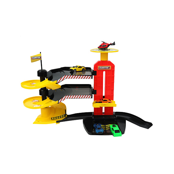 Игровой набор в виде большого гаража с лифтом-подъемником и вертолетной площадкой понравится юным автолюбителям. Комплекс оборудован винтовой рампой для перемещения между уровнями. На каждом ярусе располагается по два парковочных места. Дети смогут придумать новые сюжеты для игр с машинками и вертолетом, которые идут в комплекте.