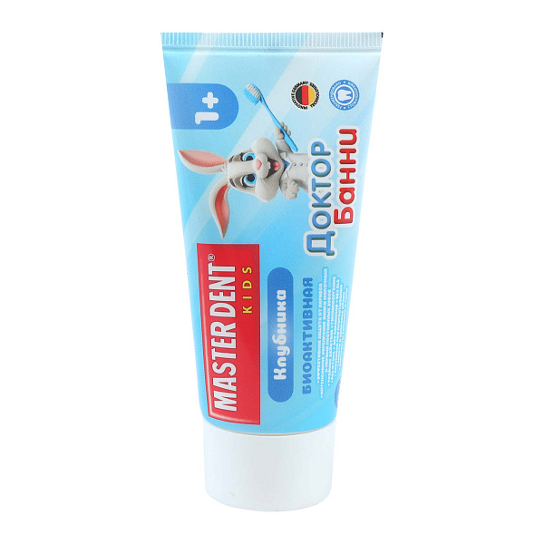 Детская зубная паста Master Dent Kids «Доктор Банни» с клубничным вкусом — специально разработана для детей от 1 года. Объем тюбика составляет 65 г. Паста обладает биоактивной формулой, которая эффективно защищает молочные и постоянные зубы от кариеса.