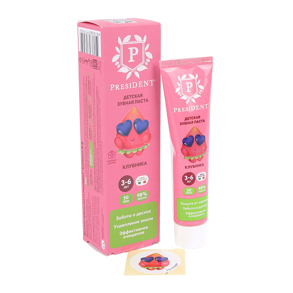 Зубная паста President со вкусом сочной клубники специально разработана для детей в возрасте от 3 до 6 лет. Нежная текстура пасты бережно очищает детские зубки, не вызывая раздражения чувствительной детской слизистой. Благодаря натуральному клубничному ароматизатору, паста обладает приятным фруктовым вкусом, который понравится малышам и сделает чистку зубов увлекательным. Входящие в состав кальций и фтор укрепляют зубную эмаль, предотвращая развитие кариеса. Регулярное использование пасты President обеспечит здоровье и сияющую белизну детских зубов, а также убережет родителей от лишних походов к стоматологу.
