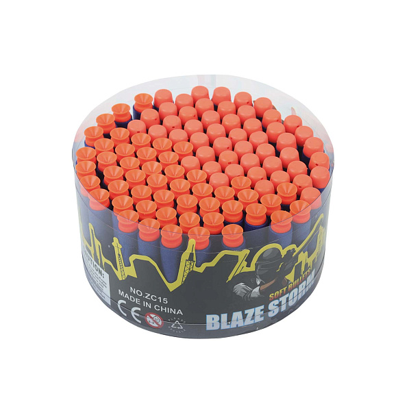 Сотня запасных боеприпасов пригодится каждому обладателю фирменного бластера Blaze Storm. Изделия упакованы в прозрачную пластиковую тару с крышкой. В наборе ребенок найдет пули с присоской и стандартным наконечником. Для их изготовления применяется мягкий ПВХ и пластик. Материал обладает небольшим весом и мягкостью, что исключает получение травмы даже при прямом попадании в человека. Игры с бластером полезны скорости реакций, моторики рук, глазомера и координации движений. А с набором патронов можно не беспокоиться, что игра закончится раньше.