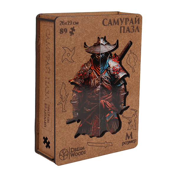 Пазлы Dream woods в форме японского самурая станет интересным и развивающим подарком для ребенка. Пазл изготовлен из прочной и экологичной древесины, которая прослужит очень долго. Для сборки картинки в наборе предусмотрена картонная фигура-шаблон. Собранную картинку можно приклеить к ней, поставить на специальную подставку и украсить получившейся статуэткой комнату ребенка. Размер готовой картинки: М (26×19 см).