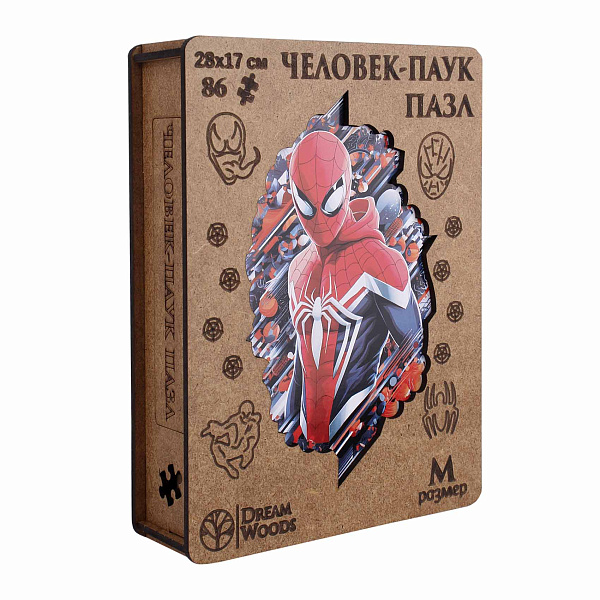 Деревянный фигурный пазл «Человек-Паук» — это увлекательный конструктор для поклонников супергеройской тематики и настольных развлечений. Изготовленный из ХДФ и бумаги, этот пазл сочетает прочность и эстетическую привлекательность, обеспечивая долгий срок службы и приятные тактильные ощущения.