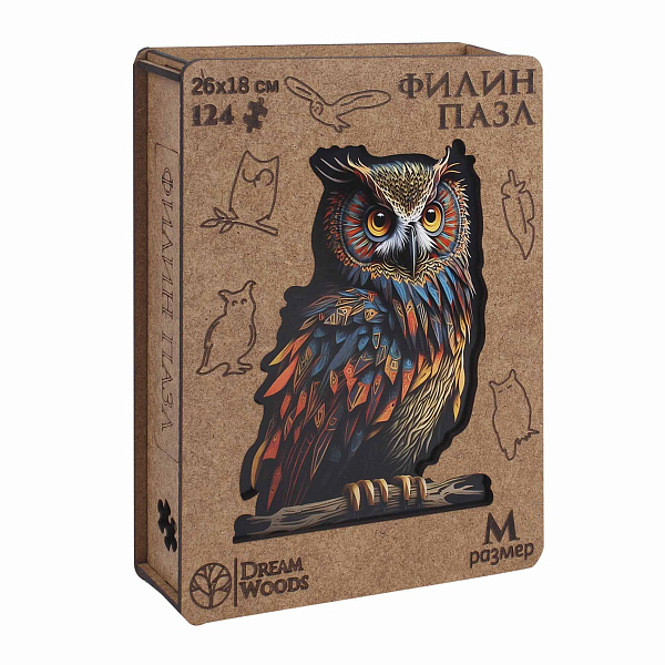 Пазл Dream Woods деревянный фигурный Филин 124детали с 8лет