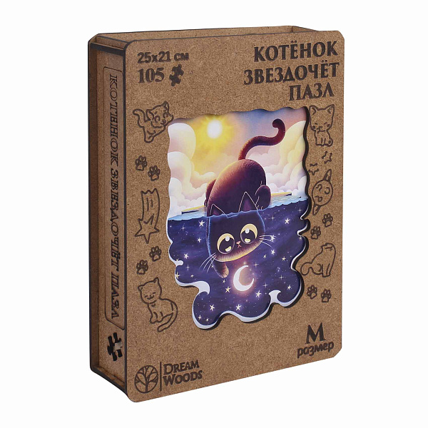 Деревянный фигурный пазл «Котенок Звездочет» воплощает в себе уникальную концепцию и привлекательный дизайн. Изготовленный из ХДФ и бумаги, он обеспечивает прочность и высокое качество, создавая оптимальные условия для многократного использования. Пазл изображает милого котенка, смотрящего на отражение звезд в ночном небе, что придает ему магическое и сказочное настроение.