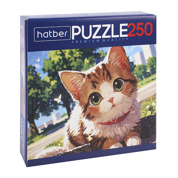 Пазл «Милый котенок» на 250 элементов представляет собой головоломку с изображением уютного летнего дня и очаровательного котенка с большими зелеными глазами. Котенок изображен на фоне яркой зелени и городской улицы, что придает картине жизнерадостность и яркость.