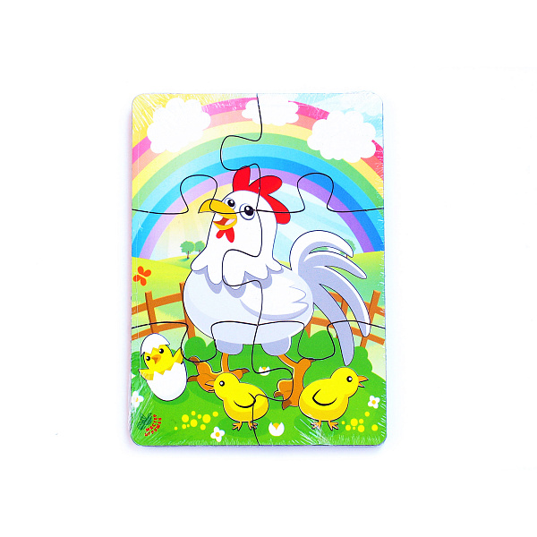 Оригинальная картинка с изображением курицы и ее цыплят на фоне радуги приклеена на фанеру и разделена на крупные части, чтобы многократно разбирать и собирать пазл. Для изготовления пазла используется экологически чистая деревянная основа, рисунок нанесен на глянцевую бумажную поверхность и наклеен поверх деревянных деталей. Мозаика поставляется в сборе, чтобы можно было оценить размер деталей и финальную картинку. Размер собранной мозаики 100х140 мм. Пазл состоит из 6 частей. Игры с мозаикой полезны для малыша и способствуют развитию пространственного мышления, логики, зрительного восприятия. Использование деревянных деталей делает игру долговечной и безопасной для малыша.