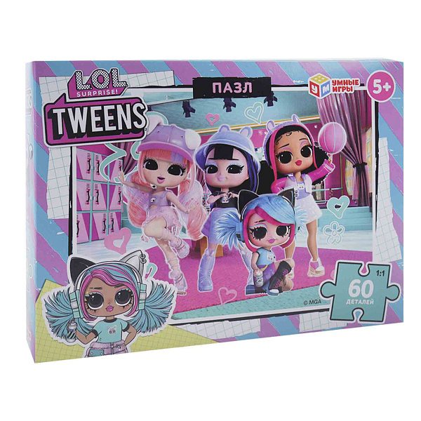 Пазл «LOL TWEENS» с 60 элементами — яркая и увлекательная игра для детей от 5 лет и старше. Собрав данный пазл, ребёнок получит красочную картинку с изображением популярных кукол LOL в стильном интерьере, что способствует развитию внимания, логики и мелкой моторики.