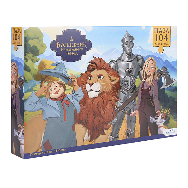 Пазл «Волшебник Изумрудного Города» состоит из 104 элементов, позволяющих создать красочную иллюстрацию из классической сказки. Каждый элемент выполнен из качественного картона, обеспечивающего долговечность и приятные тактильные ощущения при сборке. Изображение отличается яркими цветами и детальной прорисовкой персонажей, что делает сборку увлекательной и познавательной.