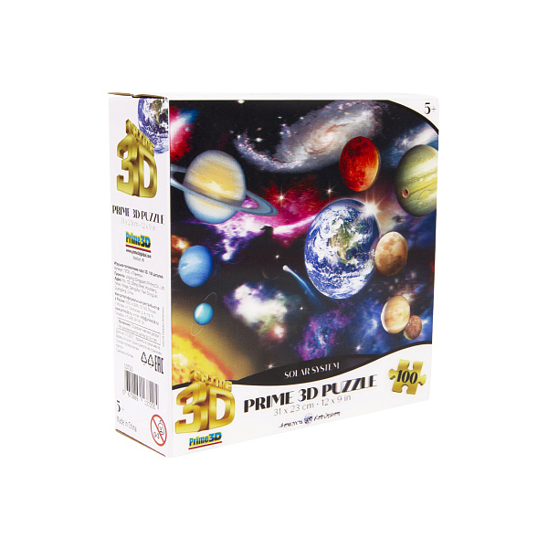 Собранный пазл представляет собой впечатляющую объемную имитацию солнечной системы. Размер готовой мозаики составляет 31х23см. Количество деталей для сборки – 100 элементов. Высокое качество изображения и специальный 3D эффект отличает пазл от классических картонных вариантов. Основа деталей плотная, толщина материала 2мм. Оборотная сторона деталей белая и глянцевая.
