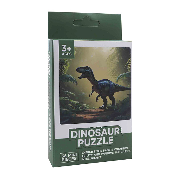 Набор пазлов динозавр тираннозавр - это увлекательная головоломка из 36 элементов, созданная для детей от 3 лет. Она помогает развивать логическое мышление, внимательность и мелкую моторику рук. Каждый элемент выполнен из прочного картона с ярким изображением тираннозавра в динамичной позе на фоне доисторического леса. Фигурки пазлов имеют удобную форму и плотно соединяются друг с другом, что делает сборку простой и приятной даже для самых маленьких.
