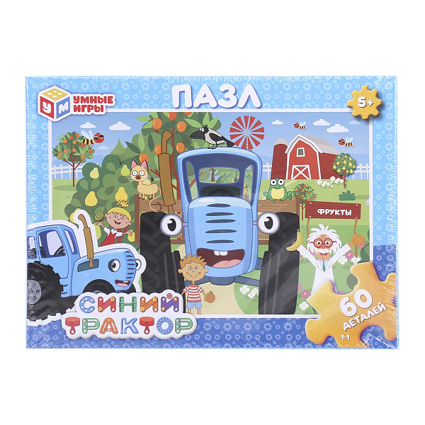 Пазл «Синий трактор» на 60 элементов представляет собой яркое и красочное изображение, привлекающее внимание детей. На картине изображен дружелюбный синий трактор в компании веселых персонажей и животного мира, что делает сборку увлекательной и познавательной.