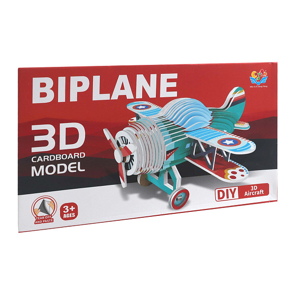 Объемный пазл собирается в модель биплана. Конструкция состоит из 52 деталей из плотного картона. Процесс сборки развивает пространственное мышление и логику. Готовая модель становится интересным элементом интерьера. Яркое цветовое решение повторяет дизайн классического самолета. Все детали легко соединяются без использования клея. Собранная конструкция сохраняет устойчивость.