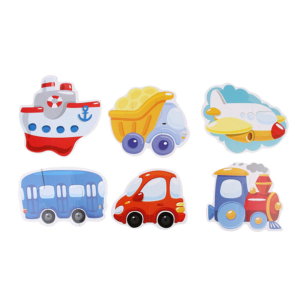Мягкие контурные пазлы «Транспорт» — это идеальный набор для самых маленьких. Комплект включает шесть ярких транспортных средств: корабль, автобус, машина, самосвал, самолет и паровоз. Каждая фигурка состоит из крупных деталей, которые хорошо соединяются друг с другом. Пазлы изготовлены из картона и мягкого полимерного материала, безопасного для детей. Их яркие и привлекающие внимание цвета помогают развивать координацию и навыки логического мышления. Этот набор станет отличным инструментом для знакомства с основами конструирования и развития мелкой моторики.