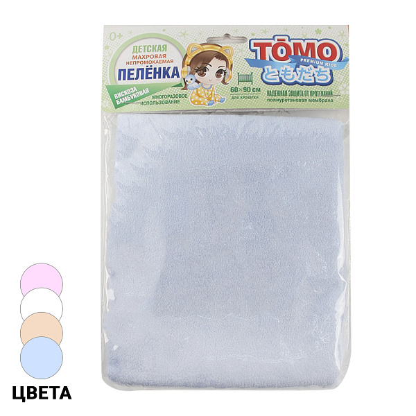 Пеленка ТОМО махровая непромокаемая бамбуковая многоразовая 60х90см в ассортименте