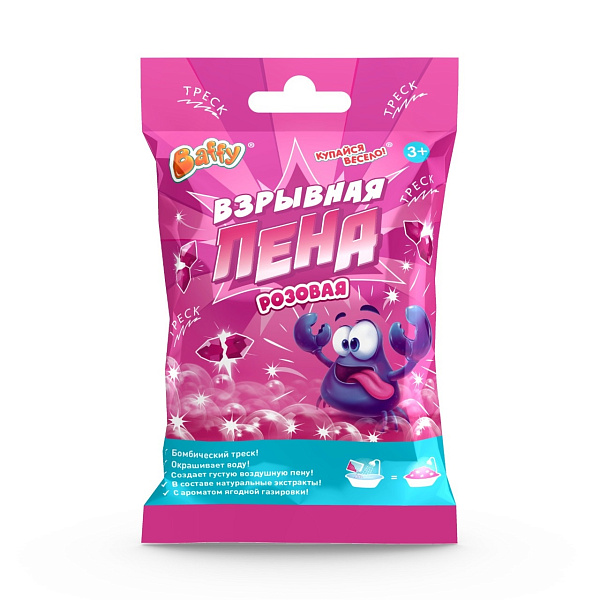 Пена взрывная Baffy Розовая Взрывная Шипучка – сухое средство, которое превращается в густую воздушную пену при добавлении воды. Игрушка подходит для детей старше 3 лет и способствует развитию воображения. Процесс создания пены становится увлекательным занятием, которое стимулирует познавательный интерес и дарит радость во время купания или игр дома.