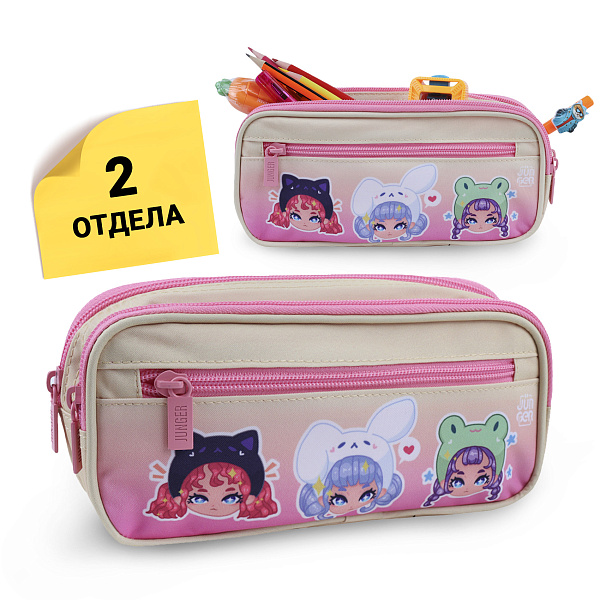 Дизайн в пастельных тонах создает уютное настроение и подчеркивает индивидуальность. Два отдельных отсека на молнии позволяют аккуратно рассортировать ручки, карандаши и другие канцелярские принадлежности.