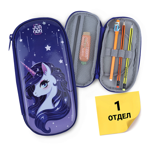 Пенал «Единорог» — идеальное решение для маленьких мечтателей. Этот стильный аксессуар с изображением магического единорога украсит учебные будни и поднимет настроение.