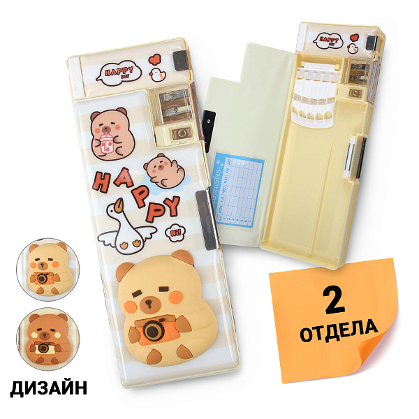 Пенал-трансформер «Капибара» — это многофункциональное решение для школьника, сочетающее стиль и практичность. Выполнен с милым дизайном капибары, он сразу привлечет внимание и станет любимым аксессуаром для школьных принадлежностей.