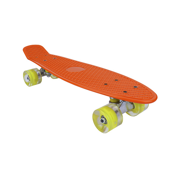 Сделанный из легкого, но прочного оранжевого пластика, пенниборд отличается небольшим весом и высокой устойчивостью. Отличительной особенностью пенниборда являются его широкие полиуретановые колеса, которые едут бесшумно и мягко. При вращении внутри колес загораются лампочки, делая пенниборд и его обладателя максимально заметными на дороге.