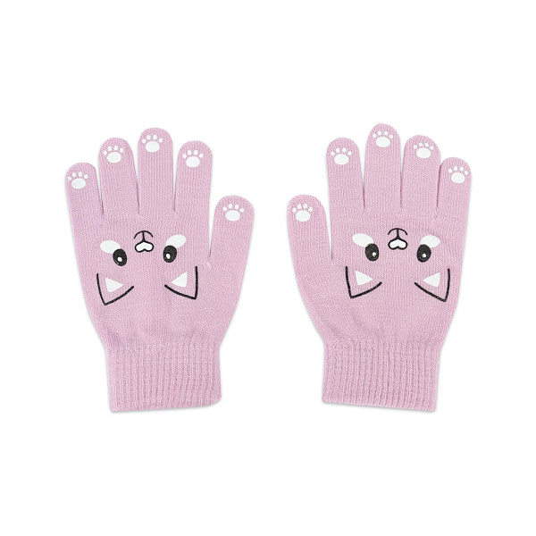 Перчатки с оригинальным дизайном вызовут восторг у любой девочки дошкольного или младшего школьного возраста. Они украшены отпечатками кошачьих лапок и стилизованными мордочками милых животных. Изображения нанесены с помощью современной технологии.