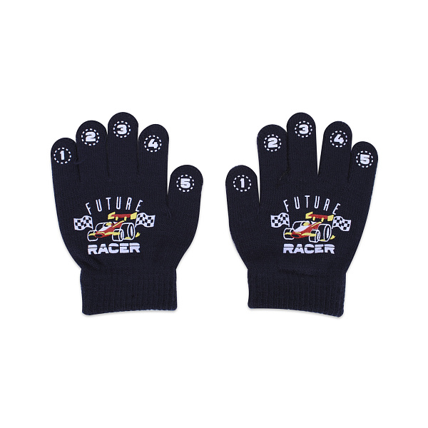 Внешний вид этих перчаток также привлекает внимание своей уникальностью. Они выполнены в темных тонах, что делает их подходящими к любому наряду. Но самое интересное - это рисунок в виде спортивной гоночной машины! Такой принт не оставит равнодушным ни одного мальчика! Каждый палец украшен цифрой от 1 до 5, что делает эти перчатки еще более забавными для ребенка.