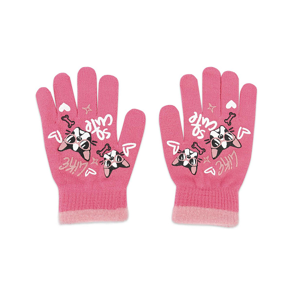 Яркие и удобные трикотажные перчатки для девочек для прохладной погоды. Благодаря своему необычному внешнему виду они сразу притягивают к себе внимание детей. Выполнены из розовой ткани с забавными рисунками в виде мультяшных собак на лицевой стороне.