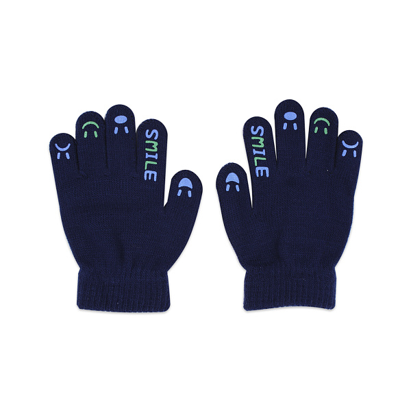 Перчатки имеют правильный пошив, который обеспечивает надежную фиксацию на руке и комфортное ношение. На пальцах перчаток нанесены забавные голубые и зеленые рисунки в виде смайликов, которые понравятся мальчику и добавят игривости в его наряд.