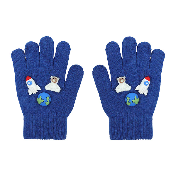 Синие перчатки для мальчиков станут отличным дополнением к любому зимнему образу. Перчатки декорированы объемными фигурками в виде космонавтов, динозавров и планеты, что делает их уникальным аксессуаром, который понравится мальчикам.