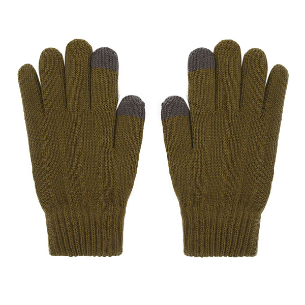 Перчатки трикотажные для мальчика выполнены в оливковом цвете с серыми кончиками пальцев, что добавляет модели стильный и современный вид. Манжеты плотные, хорошо фиксируют перчатки на запястье, защищая от холода и ветра.