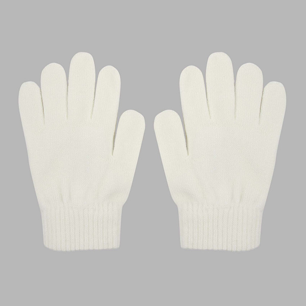 Перчатки для девочки выполнены в чистом белом цвете с ровной и плотной трикотажной вязкой. Модель оснащена эластичными манжетами, которые плотно облегают запястье, предотвращает попадание снега внутрь и обеспечивает надежную посадку. Лаконичный дизайн делает перчатки универсальными и стильными для любого наряда.