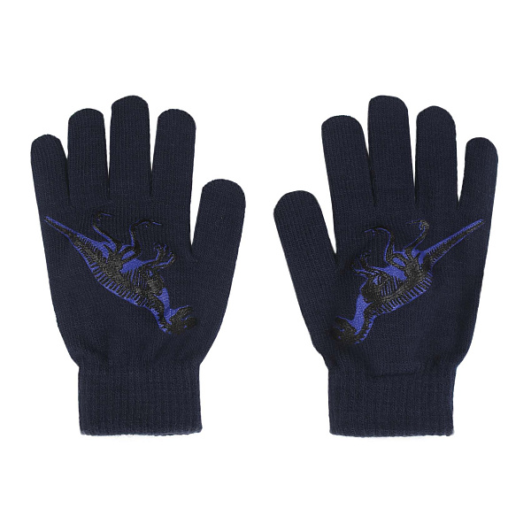 Перчатки Lanson Kids трикотажные с изображением динозавра темно-синие