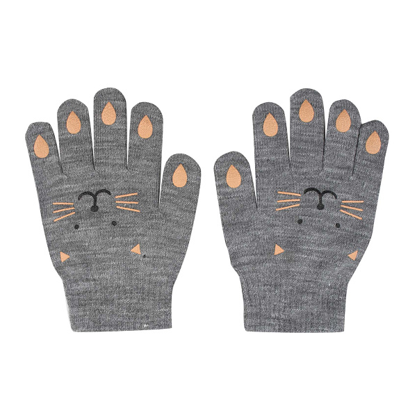 Перчатки Lanson Kids трикотажные с изображением мордочки котенка серые